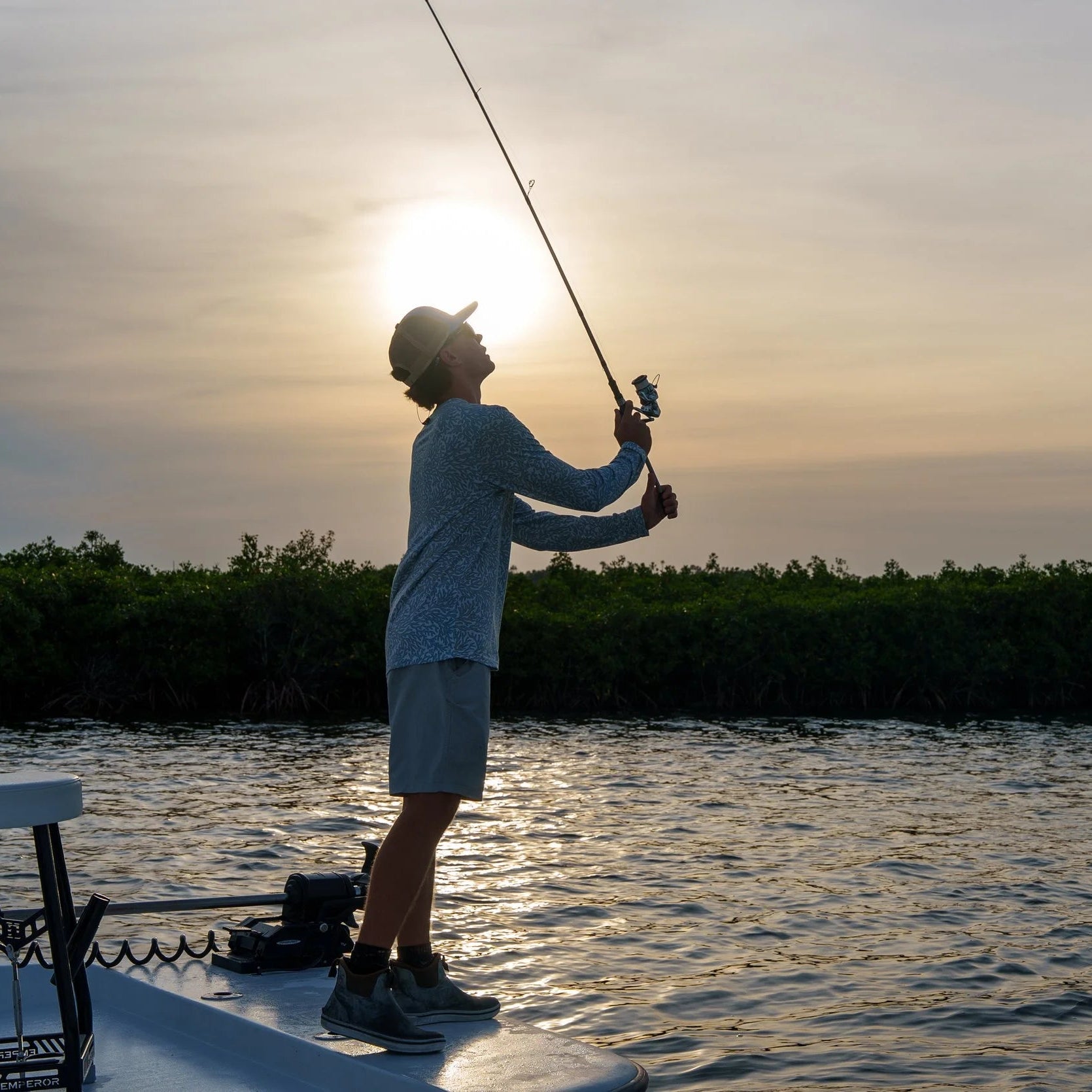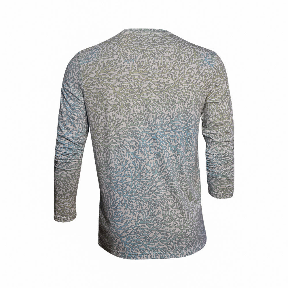 The Coral Sea Breeze was designed for days spent under open sky — lightweight, breathable, and built to perform from the first cast to the last call. Inspired by coral reefs explored while diving in the South Caribbean, the pattern reflects the color, depth, and movement found below the surface.